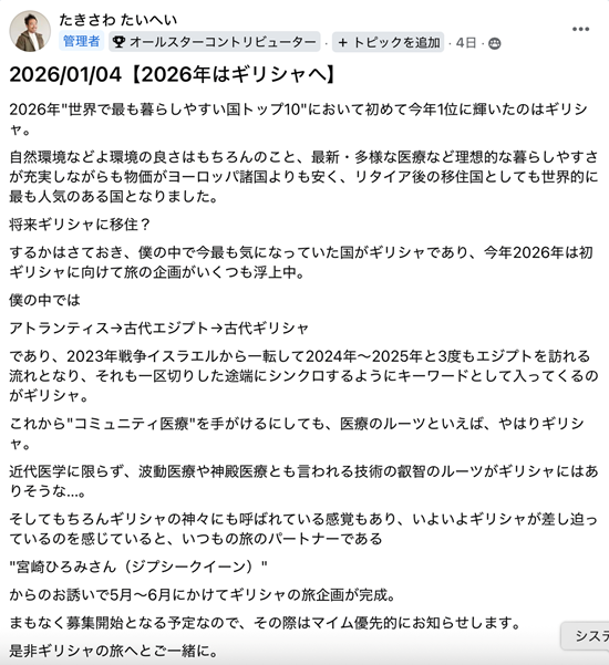 ● たきさわたいへいコラム:ギリシャツアー募集開始