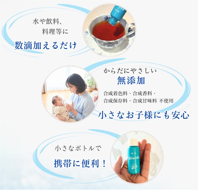 水、アグア酵素水、その他の酵素水に数滴添加した際は、よく振ってからご使用ください。