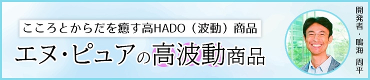 やつはでは「HADO(波動)※」をコンセンプトにした商品を幅広く取り揃えていますが、その中でも、代表的な商品開発を手がけるのが、株式会社エヌ・ピュア代表取締役社長 鳴海周平さんです。 ご自身が歩くパワースポットであるかのような、癒しのエネルギーを発する鳴海さん。 そんな鳴海さんが開発したエヌ・ピュアの商品は、どれもやさしく、高い癒しのHADOを感じるものばかり!今回はそんな癒しのエヌ・ピュア商品を特集します。
