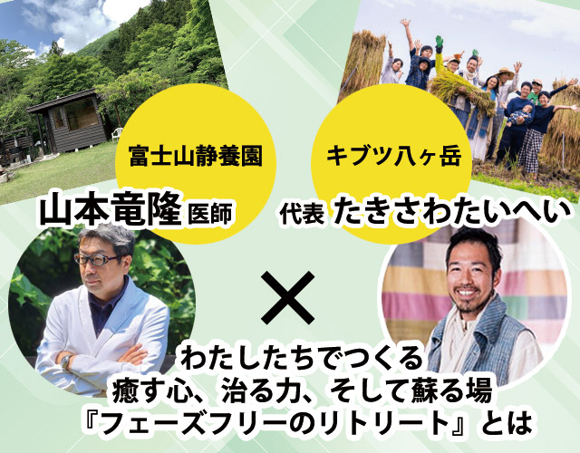【録画配信】山本竜隆医師×たきさわたいへい対談「富士山麓と八ヶ岳の地が目指す自然治癒力を引き出す場づくり」(10/20(月)開催/会場リトリートドームOR)