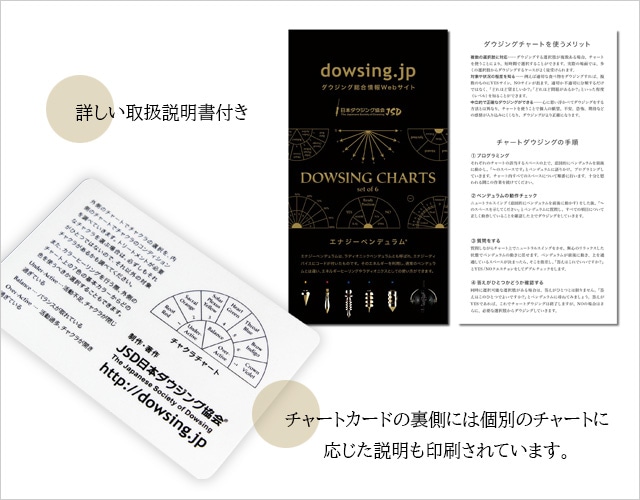 多角的なダウジングをチャートを使って行うことで、あなたのダウジングスキル向上を助けます。詳しい説明書が付いているので、未経験の方、初心者の方でも安心して使うことができます。