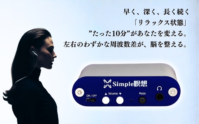 『シンプル瞑想』は、出力される音を聞くだけで脳波が『シータ波』の状態に近づくようにサポートしてくれる健康機器です。